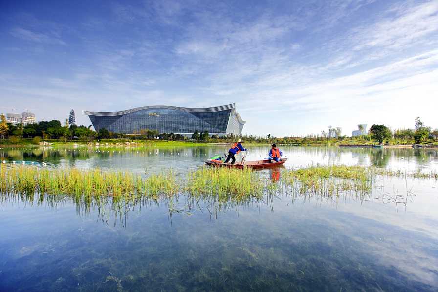 對于部分城鎮(zhèn)污水處理廠排放標準較低的現(xiàn)狀,利用水生態(tài)修復(fù)的方法,建設(shè)人工湖或者濕地等水體,快速低成本的提高排放標準,實現(xiàn)水資源可持續(xù)利用,污水資源化。