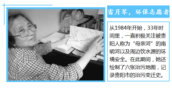 自1984年退休后,眼見隨著城市發(fā)展,南明河污染日漸嚴重,又因為幼年時有過喝不干凈的水而差點病死的經(jīng)歷,雷月琴老人萌生了要保護飲水源的念頭。從2008年開始,她用七年時間手繪了六張治污地圖,記錄了從1994年到2015年南明河的治污歷程。在這些地圖上,老人用紅筆標注了當年的污染嚴重河段以及沿岸的電廠、造紙廠等污染大戶。而如今,這些污染大戶都已經(jīng)搬離了南明河。