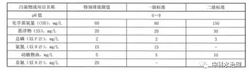 排入具有飲用水源功能的湖庫岸邊外延2km范圍內(nèi)的執(zhí)行下表的特別排放限值;