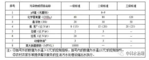 規(guī)模小于 2m3 /d(不含)的新建農(nóng)村生活污水處理設(shè)施,水污染物排放限值執(zhí)行下表中三級標(biāo)準(zhǔn)。