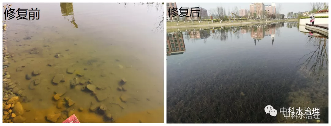 修復后:工程施工結束后,湖面水色正常無異味,水面無藻類、無浮萍、無垃圾、無臭味,水邊能清澈見底,水體透明度≥2.0米已上。水質主要指標(總氮、總磷)含量優(yōu)于國家《地表水環(huán)境質量標準》(GB3838-2002)地表水Ⅲ類標準。