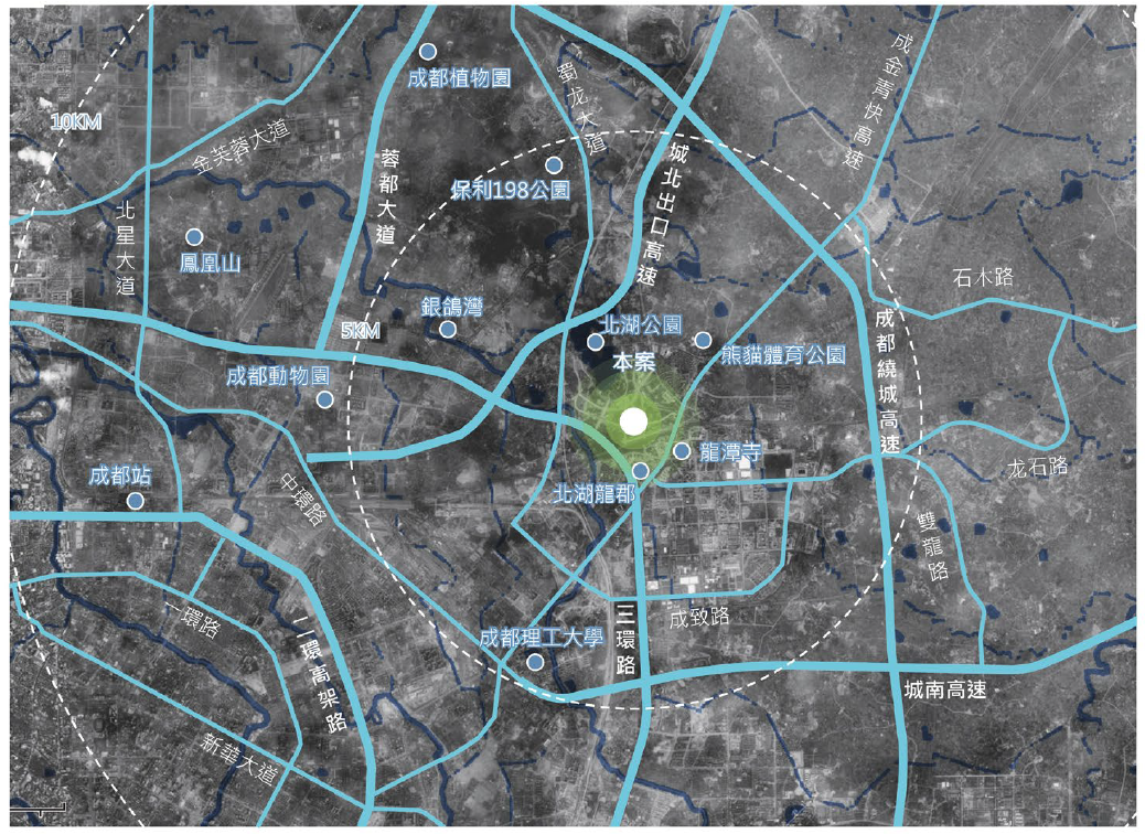 項(xiàng)目地塊位於成都市北部,未來成華區(qū)的副中心——北湖熊貓國(guó)際旅遊休閒區(qū),與成都火車站直線距離8.5公里,距成都東站9.5公里,距北湖客運(yùn)站0.7公里,距離市中心位置10公里,地理位置優(yōu)越,交通便利。