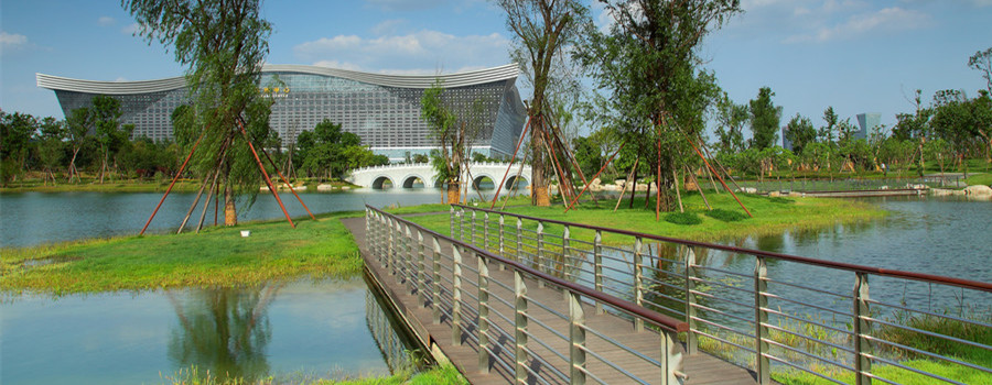 補(bǔ)水方式:通過(guò)污水處理廠一級(jí)A標(biāo)的尾水進(jìn)入濕地處理,使主要指標(biāo)達(dá)到地表水三類(lèi),然后再排入肖家河與河流的生活污水混合,將總氮降到10mg/L左右,再將混合水補(bǔ)充到錦城湖。